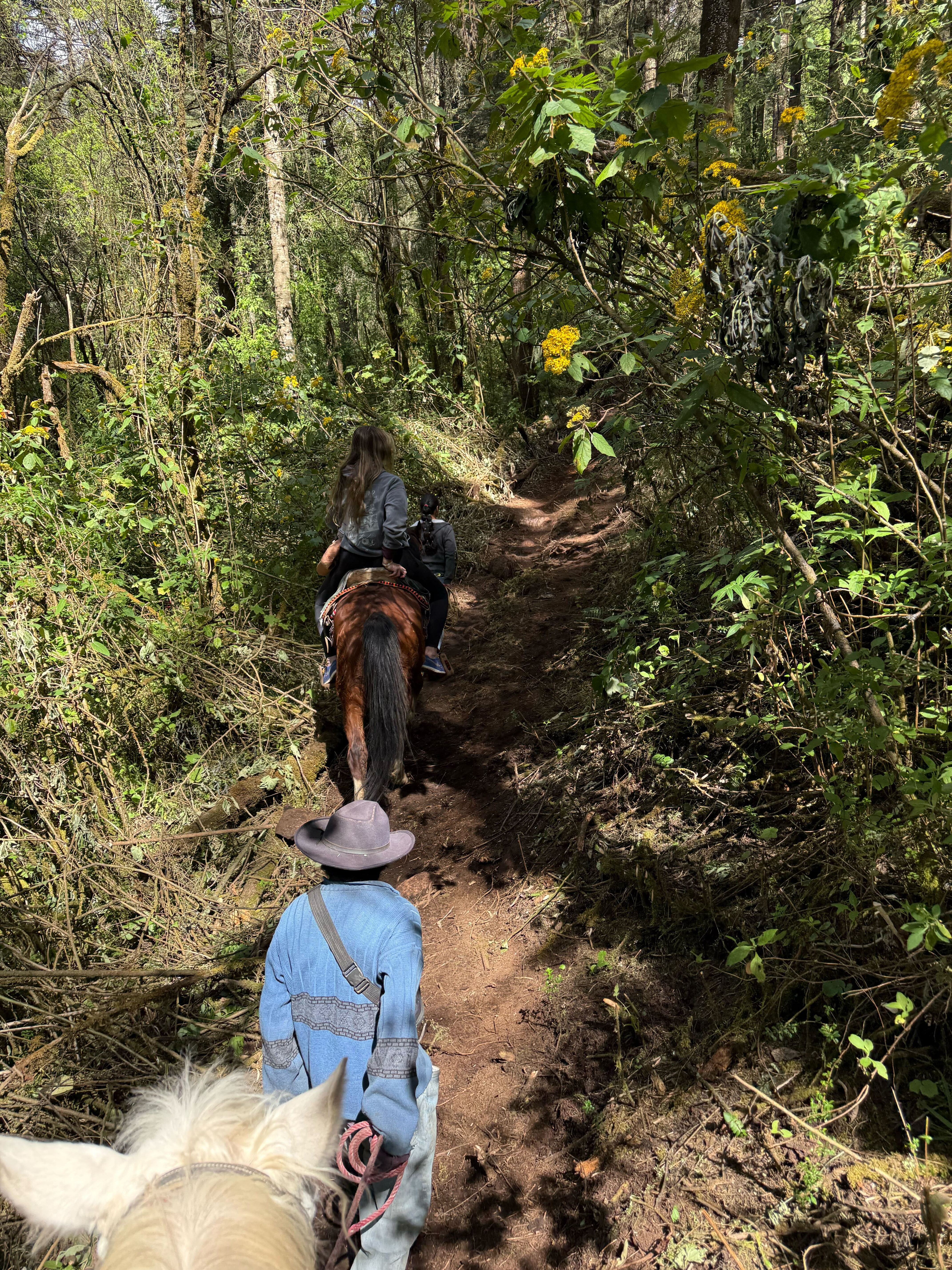 It took about 45 minutes on horseback to reach the second base at the top of the mountain, just before you enter into the oyamel fir forest. Once we all arrived and dismounted, it was time to complete the journey on foot. I was doing my best to gulp down oxygen along the way as there is no time to waste once you reach the top.